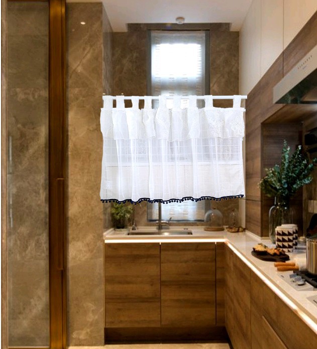 穴を開けないガーゼの田園刺繍の白いガーゼのお姫様風がカーテンのベランダの窓の小さいカーテンの短い窓を隔てています。