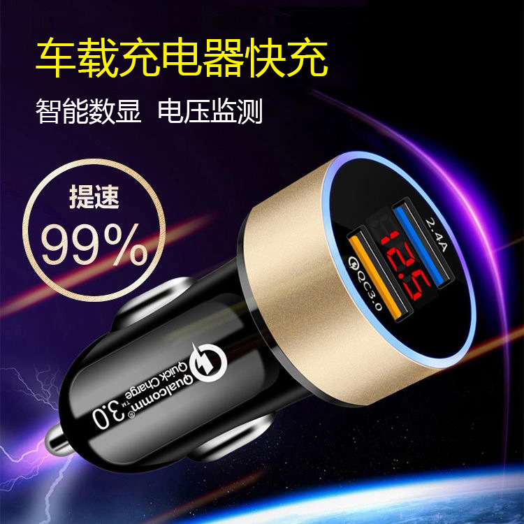 Qc3.0デジタル表示車載ダブルusb充電器急速充電二牽引車用携帯電話充電器プラグ車充電器