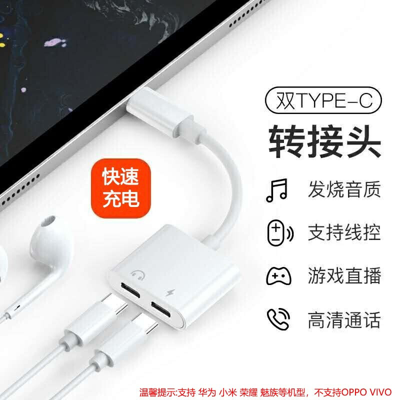 小米華を適用してtype-c3.5mmに歌を聴く通話充電歌二合一イヤホン模擬アダプタ