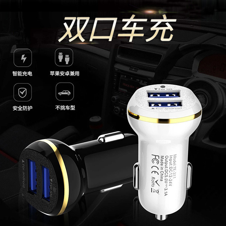 新型ダブルusb車載充電ヘッド3.1aスマートダブルU携帯電話充電器二口mini車充電ヘッド