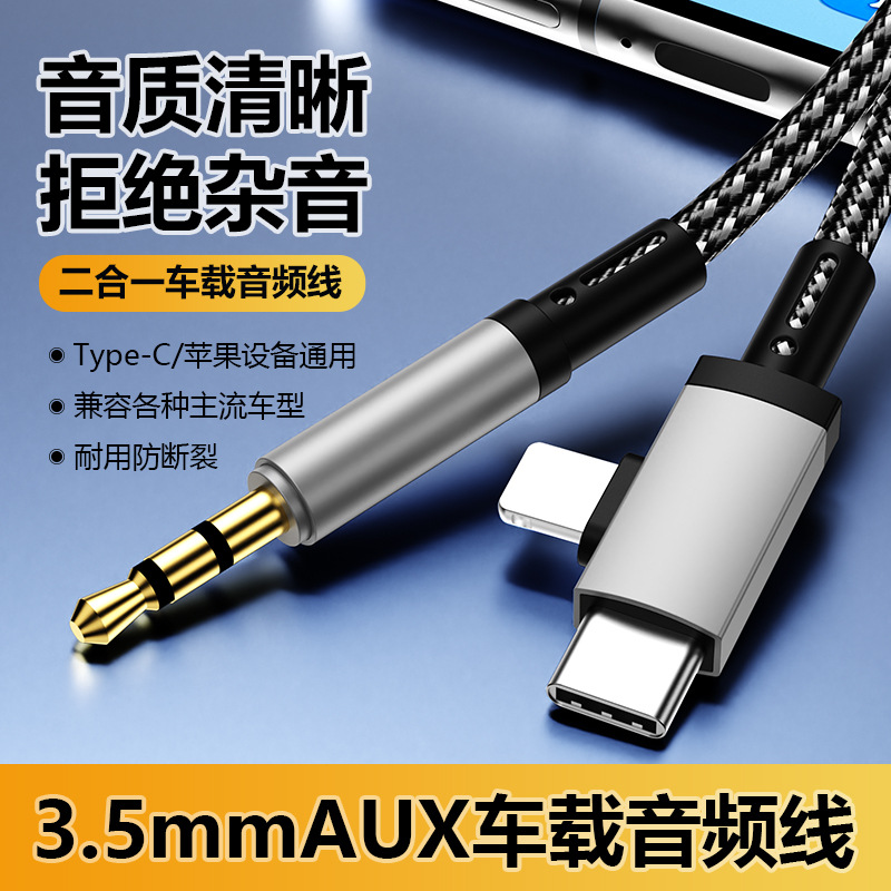 国境を越えて3.5mm回転type-cアップル車載オーディオ線2 in 1 AUXイヤホン音響中継線を適用する