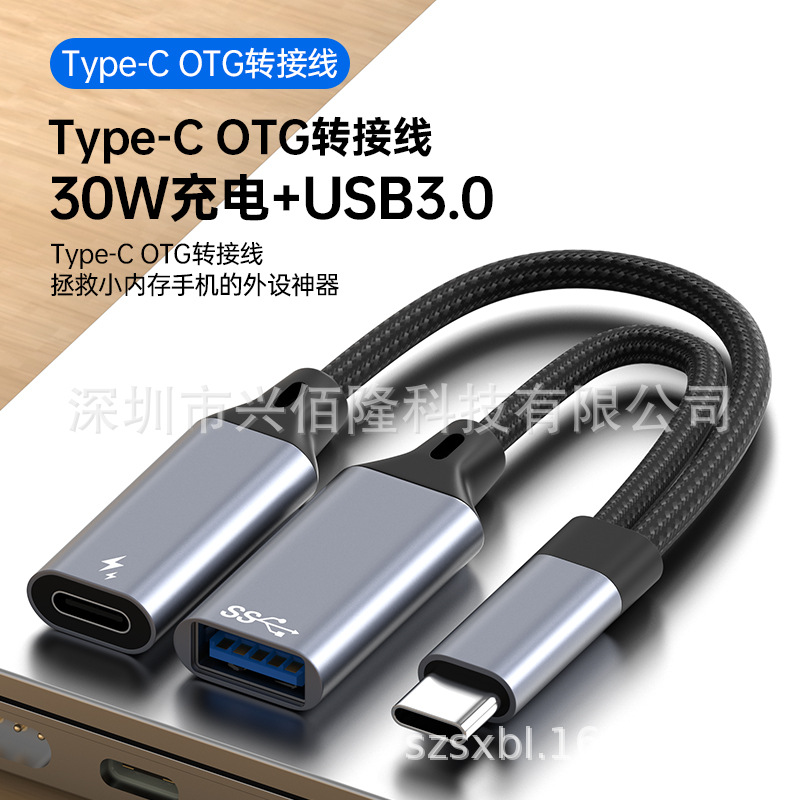 国境を越えた一分二給電OTG中継ケーブルType-C変換USB3.0二合一変換コネクタ急速充電PD30W