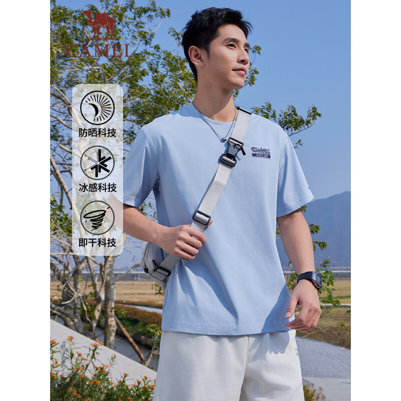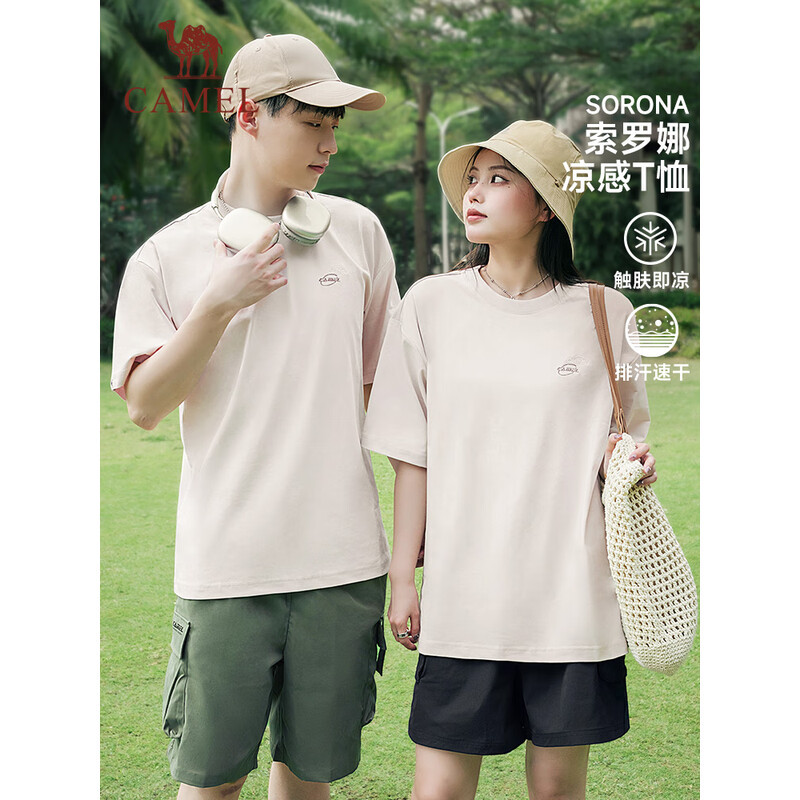 キャメルサマーアイス感Tシャツ2025夏新作日焼け止め速乾半袖男女同型ラウンドネックルーズトップ