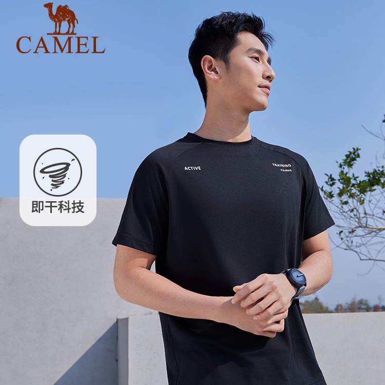 キャメルスポーツ半袖メンズ2025春夏新作ランニングカジュアルラウンドネックソフト速乾通気性Tシャツボトリングシャツ