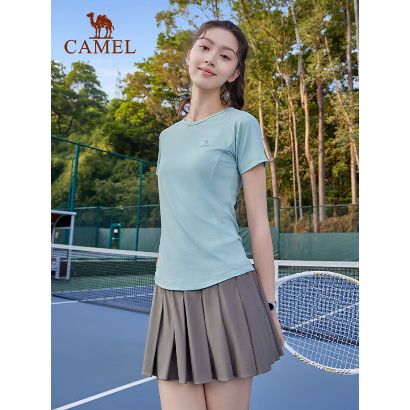 キャメルスポーツ Tシャツ 2025 新しい女性の速乾性ラウンドネックスリムランニングヨガトップテニスウェアグループ購入卸売