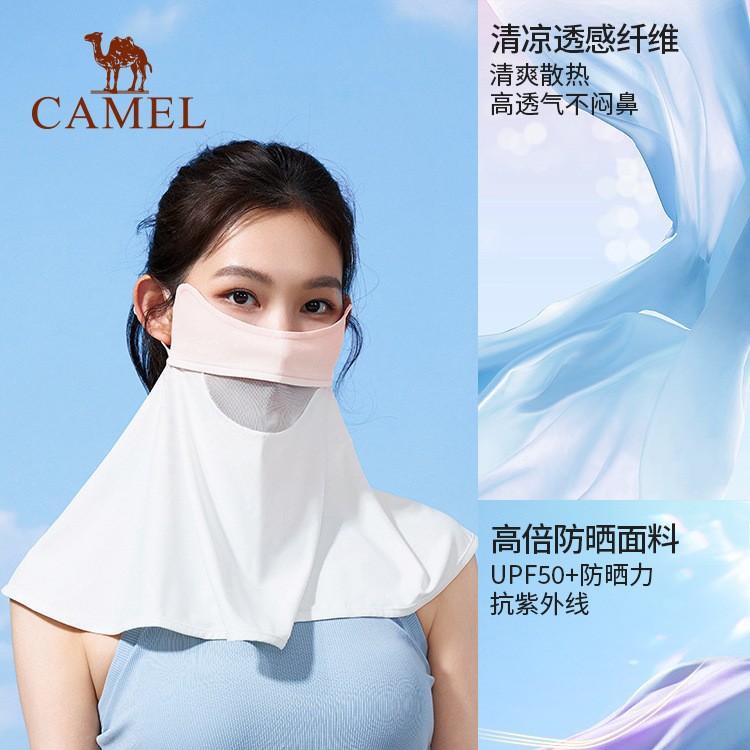 キャメルアイスシルク耳掛け日焼け止めマスク女性用フルフェイスサンシェードベール抗UV通気性マスクネックプロテクターフェイスマスク