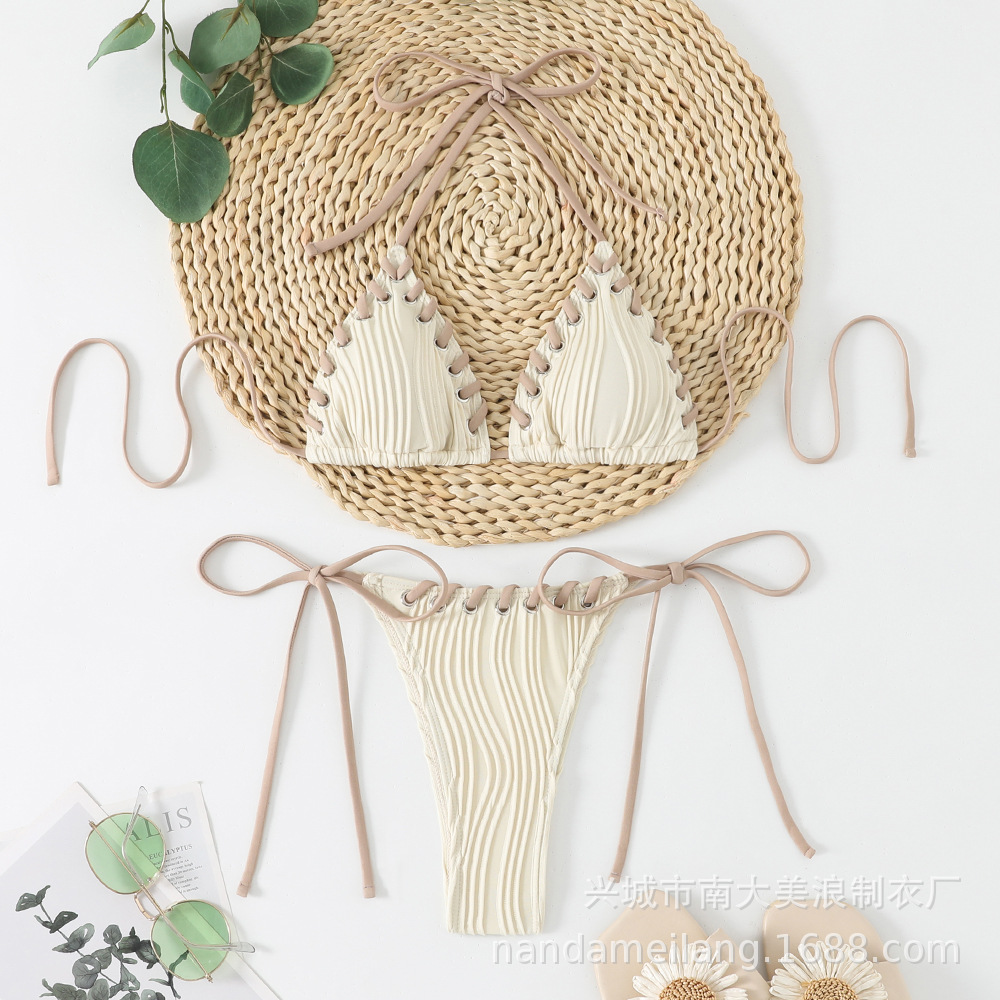 2025 ヨーロッパとアメリカの新しいスタイルのホルターネックストラップストライプジャカードブラックアイドロープセクシーなビキニ女性水着ヨーロッパとアメリカ