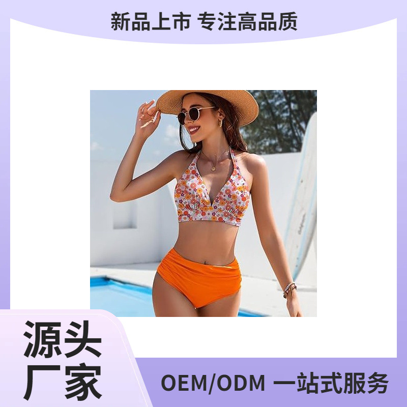2025 新しいスプリットレディースビキニヨーロッパとアメリカのセクシーな水着プリントストラップスプリット外国貿易水着