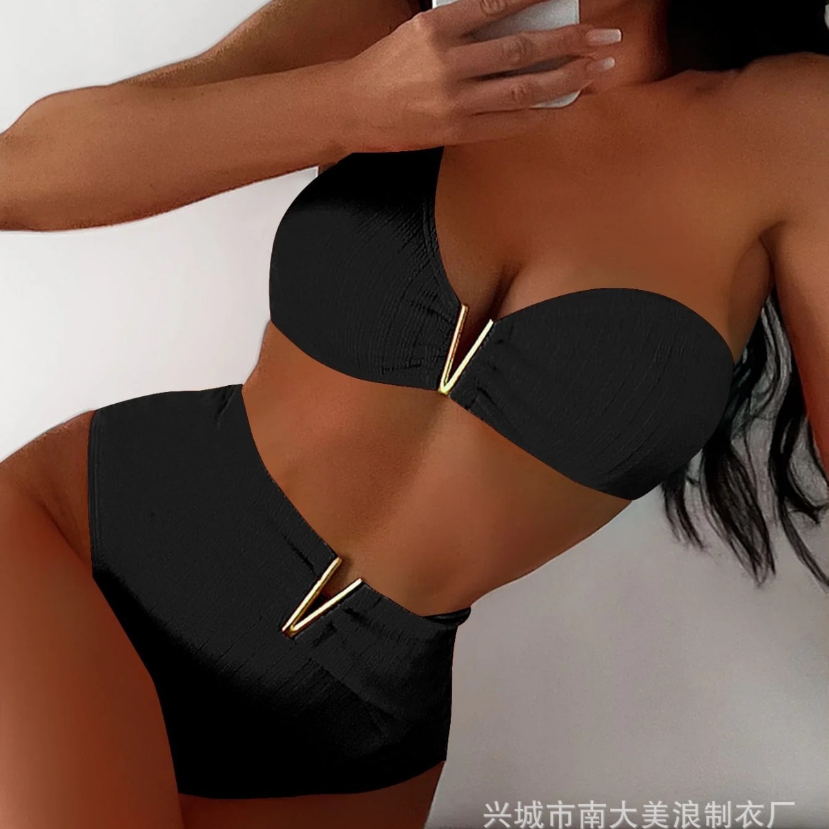 2025年新作U字型プッシュアップビキニ、欧米風セパレートビキニ、高級生地使用水着、在庫あり