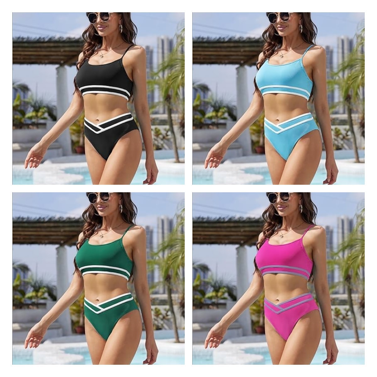2024欧米のセクシーな純色の女性の水着のハイウエストのビキニのスーツのスポーツの2つのタイプの水着は色を合わせます。