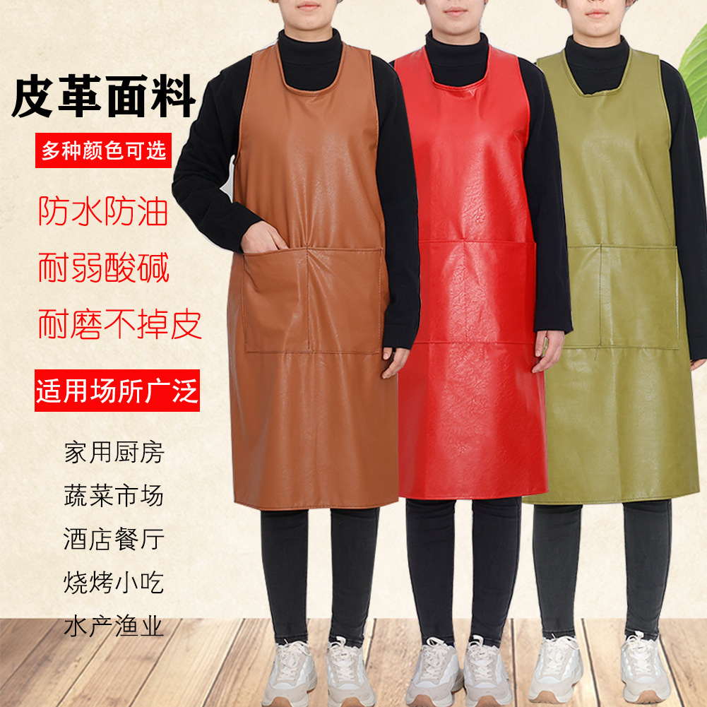 韓国版ファッション皮革馬甲防水油厚手耐摩耗性成人ノースリーブエプロン背心式男女キッチン汚れ防止