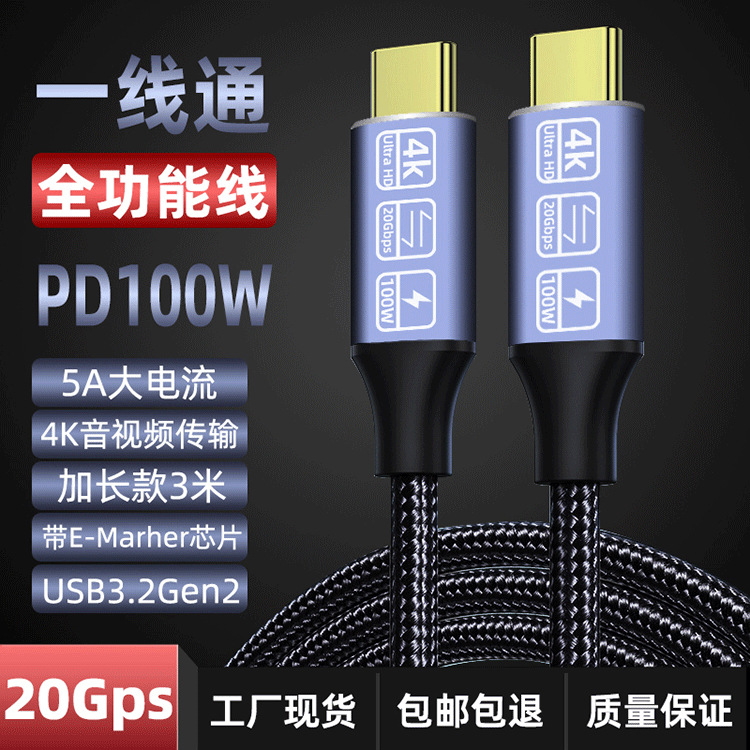 100wデータケーブル5aダブルヘッドtypec全機能データケーブル4kハイビジョンスクリーン10gbps伝送usb3.0