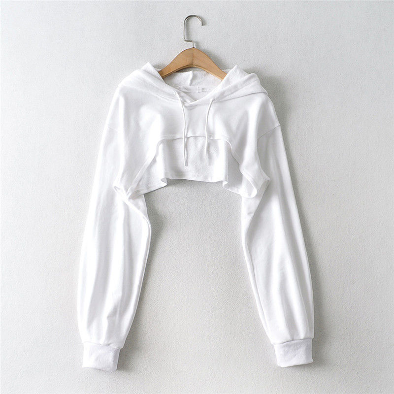 クロスボーダースウェットシャツレディースフード付き2025初秋新作イン個性不規則へそ出し超ショート長袖トップス女性用