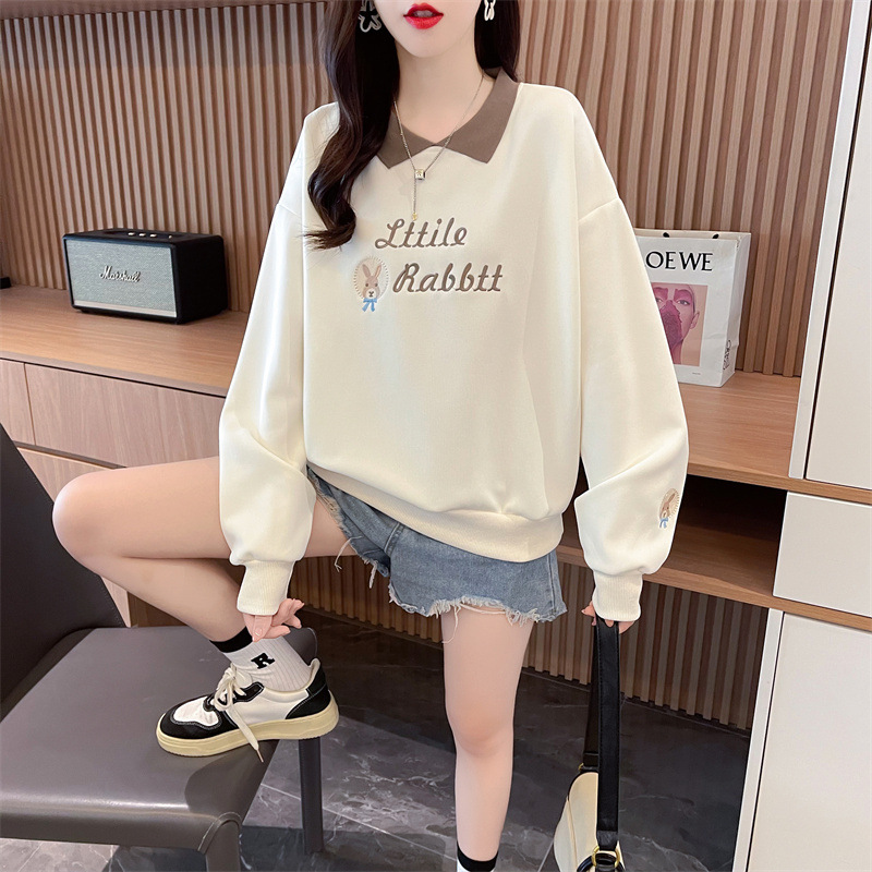 Polo襟の衛衣の女性の2024の新型の春秋の漫画のゆったりしている怠惰な風の百合の小さい人のゆったりしている上着の女性の潮