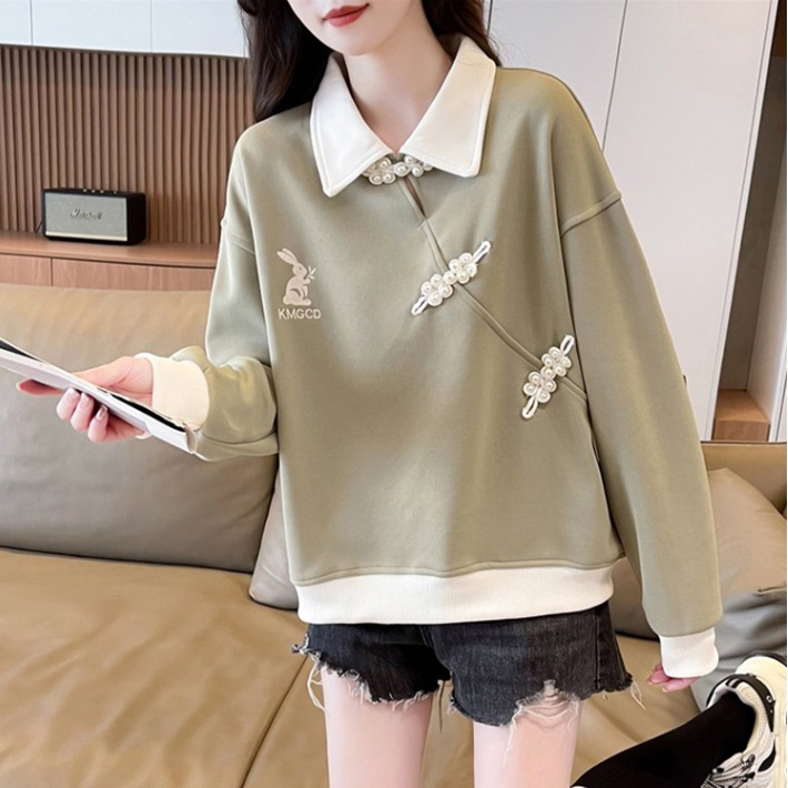 ポロ襟スウェットシャツ レディース トレンド 春秋新作 ポケット付き デザイン感 2025 ゆったり 大きめサイズ 長袖スウェットシャツ 卸売