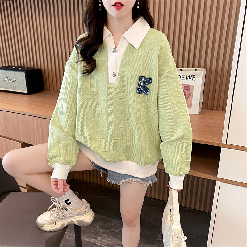 Poloスウェットの女性の薄い長袖の小さい子供の韓国版の刺繍のアルファベットの長袖は色の復古のファッションのスウェットの女性の潮にぶつかります。