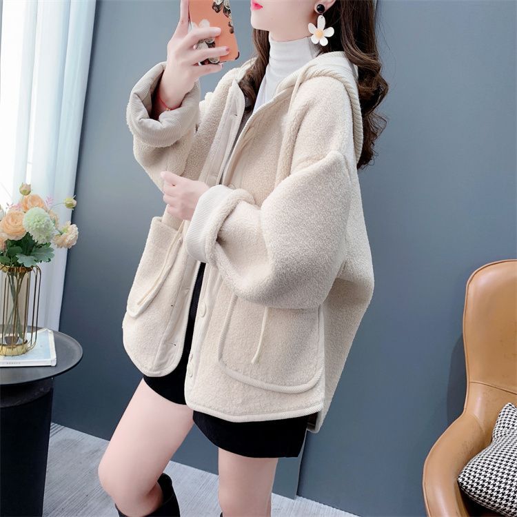乳系は小香風の子羊の毛の衛衣の女性の秋冬のゆったりとした厚いカーディガンのファスナーの高級感のコートの女性を着ます。