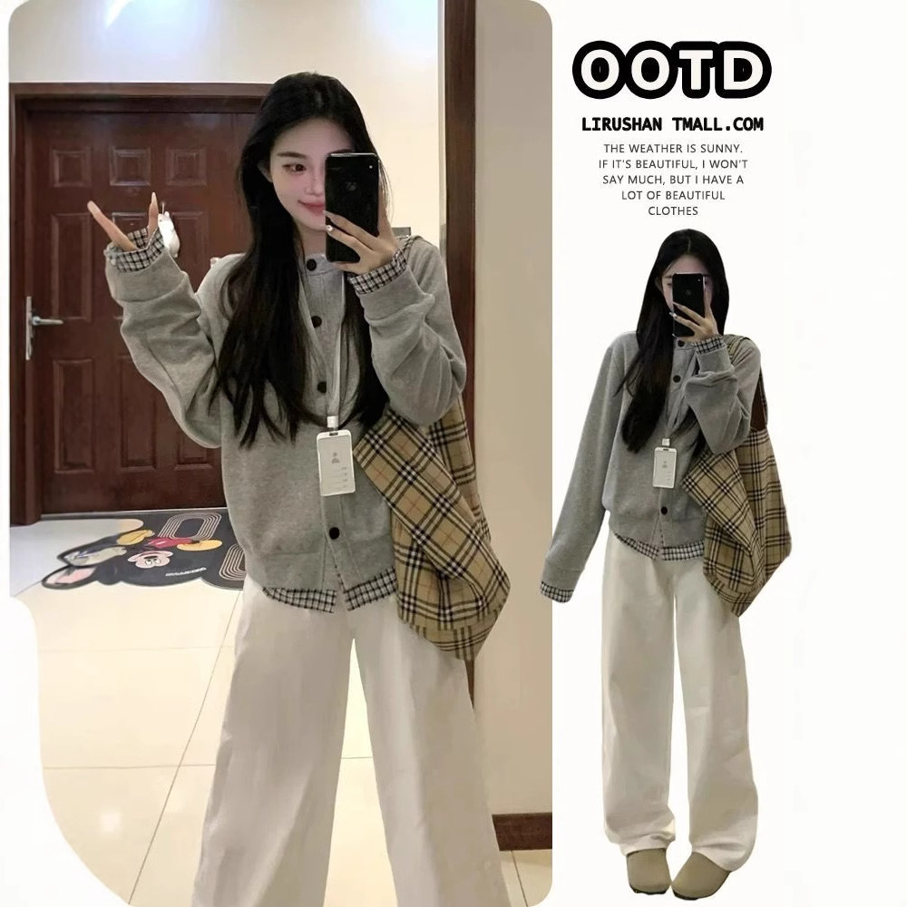ゆるい偽の2つのガーディアンの女性2025年の新しい秋の洋気減齢ネットのデザイン感春秋の薄い上着