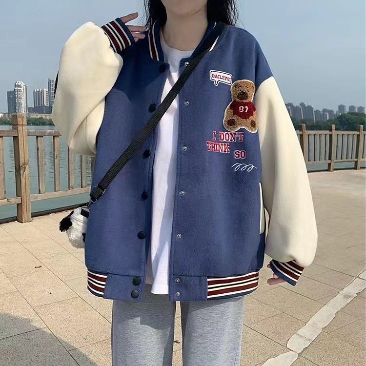 アメリカ野球服の女性は厚いベルベット2025春秋の新商品がゆるくて痩せているレジャー運動に合わせて色のガードルにぶつかった