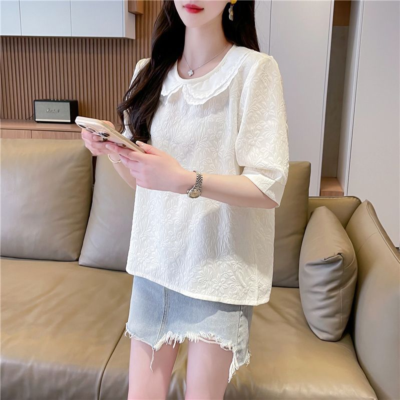 韓国風ルーズでファッショナブルで多用途なドールカラー半袖Tシャツ女性用2025夏新作小柄な人向けの年齢を減らすトップス