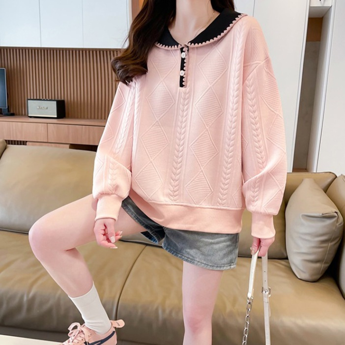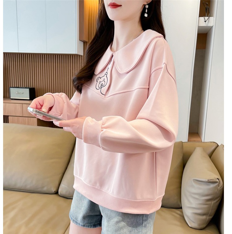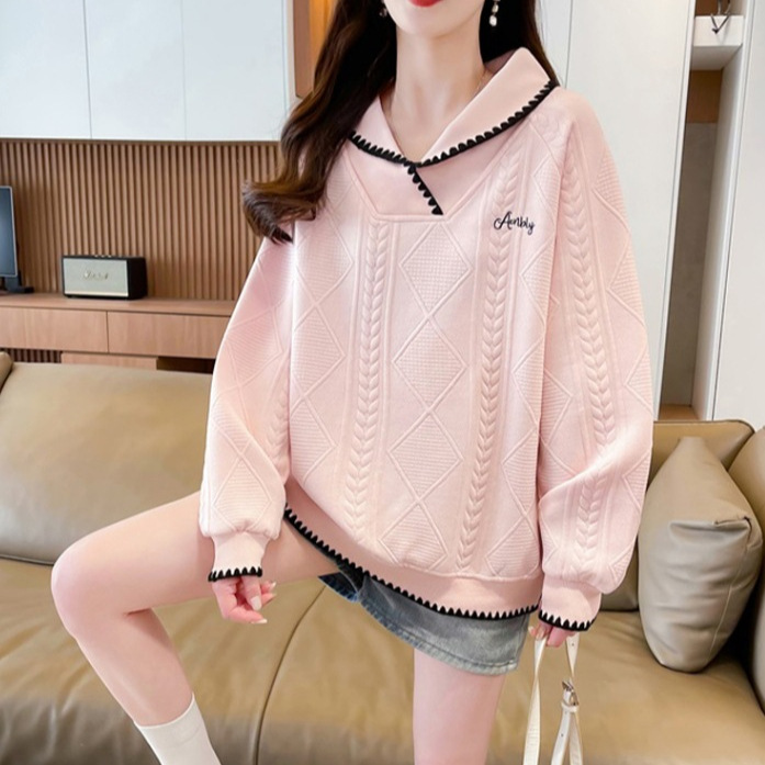 クロスボーダー早春デザイン感小衆衛衣女春秋薄金外着アルファベット刺繍日系polo襟上着女