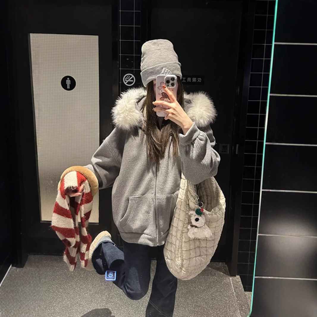 アメリカのレトロな毛の襟と帽子のカーディガン