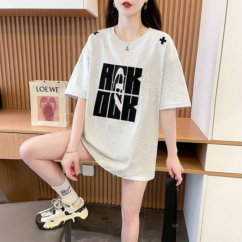 2025新型半袖tシャツ女性綿綿ゆったり大きいサイズ刺繍アルファベット高級感カジュアル風上着女性ブーム