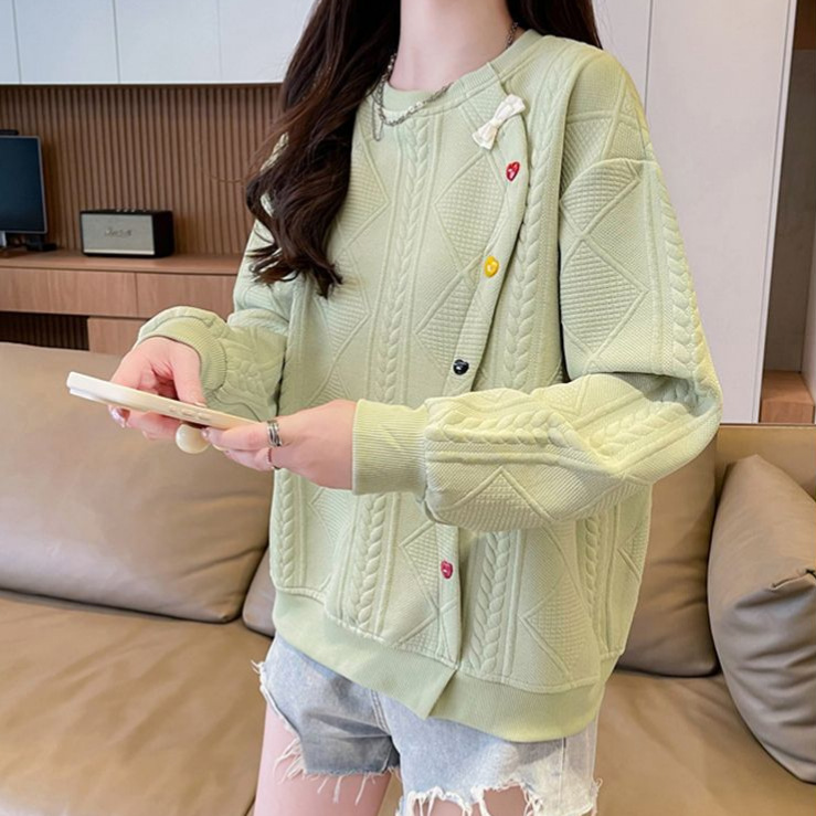 アメリカンスタイルのレディーススウェットシャツ、ラウンドネック、レトロなジャカード織り、2025年春秋新作、立体装飾、裏起毛、厚手、長袖スウェットシャツ