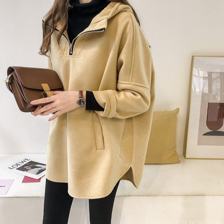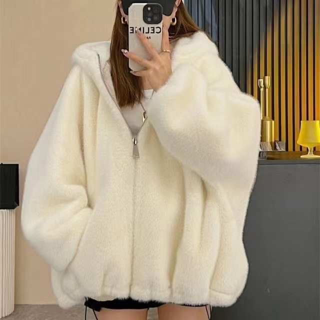 2025秋冬新作 裏起毛厚手ジャケット レディース ゆったり 韓国風 フード付きスウェットシャツ ふわふわ 無地 ジップアップトップス