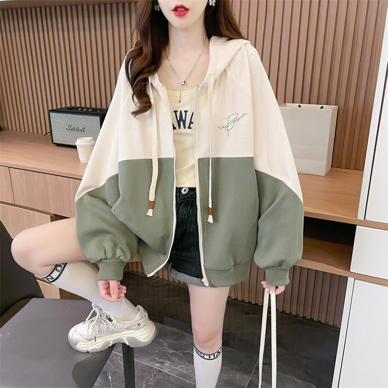 ジッパーのガードルの女性の金とベルベットの厚い秋の冬の新しい文字の国境を越えた卸売りと帽子のカーディガンのコートの女性の卸売り