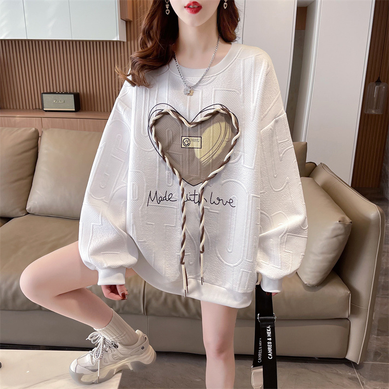 丸首スウェットシャツ レディース 裏起毛 厚手 2025秋冬 ゆったりスタイル ミドル丈 ラムウール風 レタープリントトップス 卸売