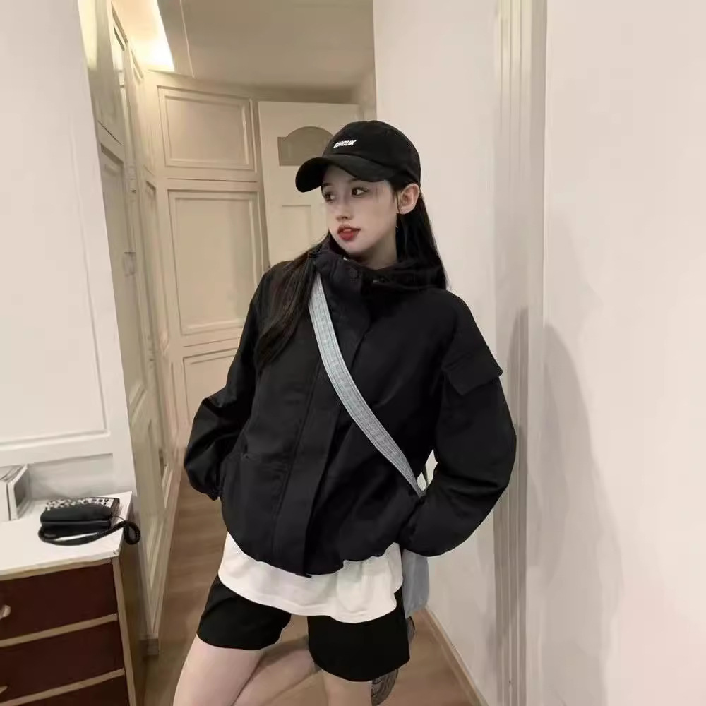 2025 春と秋の新しいアメリカンアウトドアフード付きジャケットカジュアルトレンディなルーズで多用途なトップス