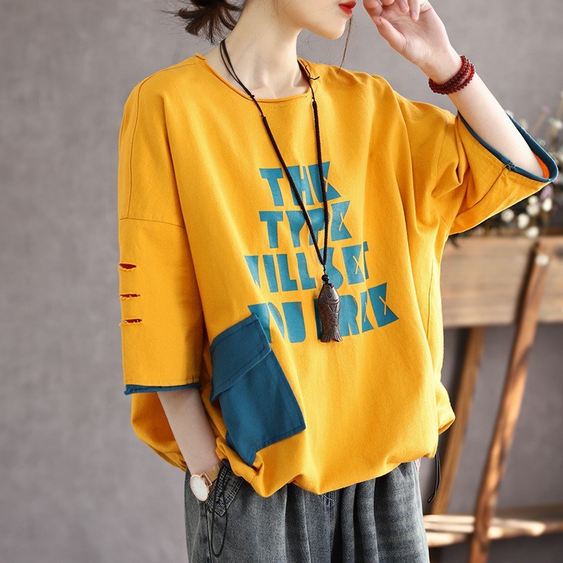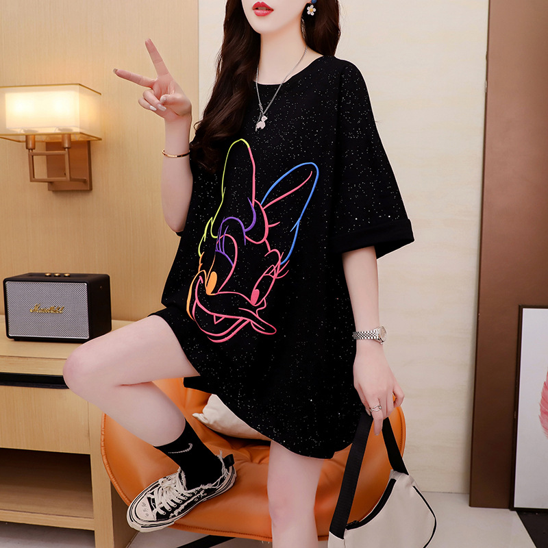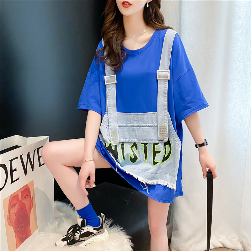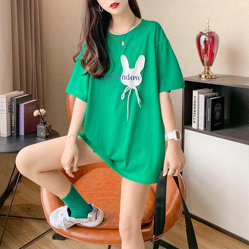 ミディアムロングtシャツレディース夏クリエイティブins風欧米外国貿易綿入り太ったmmストリートゆるい半袖上着レディース卸売