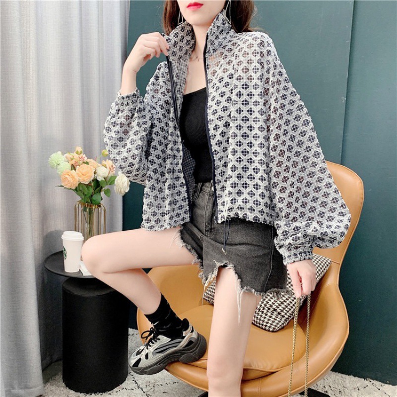 シャツの女性はファッションデザイン感のある小さなカーディガンのジッパーを重ねて夏の2023の新しい日焼け止め上着の女性卸売りを着ている