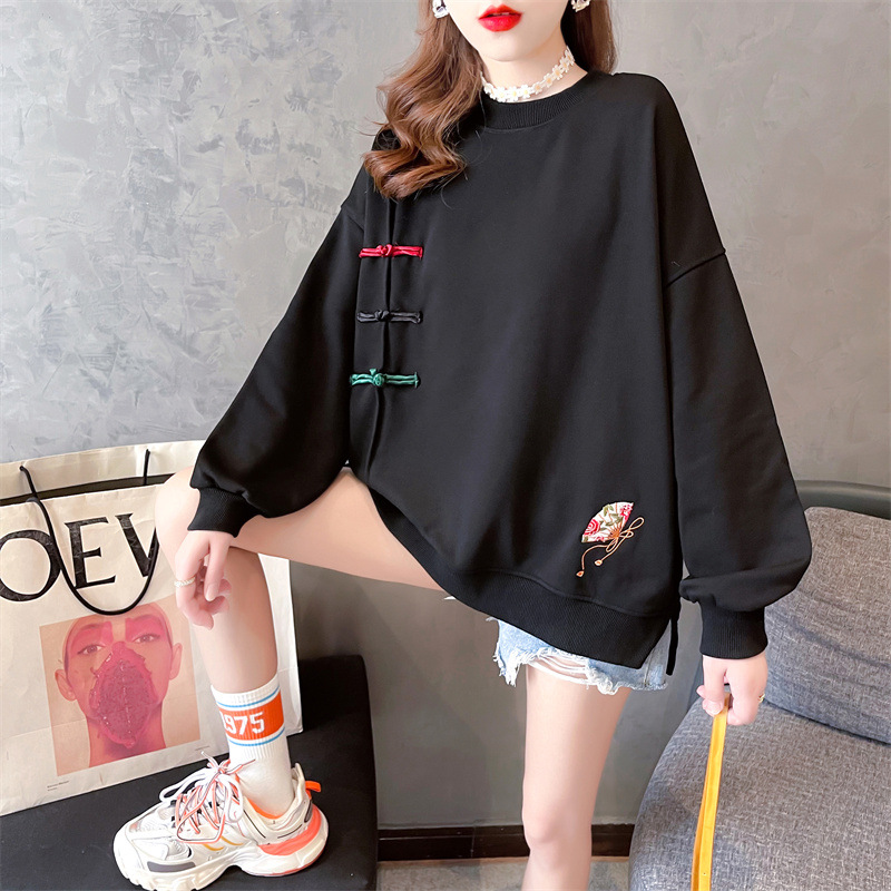 丸首の衛衣の女性の韓国版のゆったりしている大きいサイズの怠惰な風の刺繍の中国風の中で長いタイプの秋の薄いモデルの衛衣の女性の潮