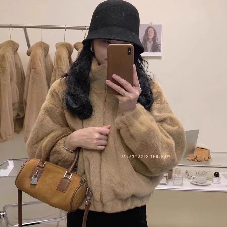 2025年秋冬新作ラムウールコート レディース ゆったりとしたカジュアルスタイル カーディガン ジップアップ スタンドカラー ショート丈スウェットシャツ