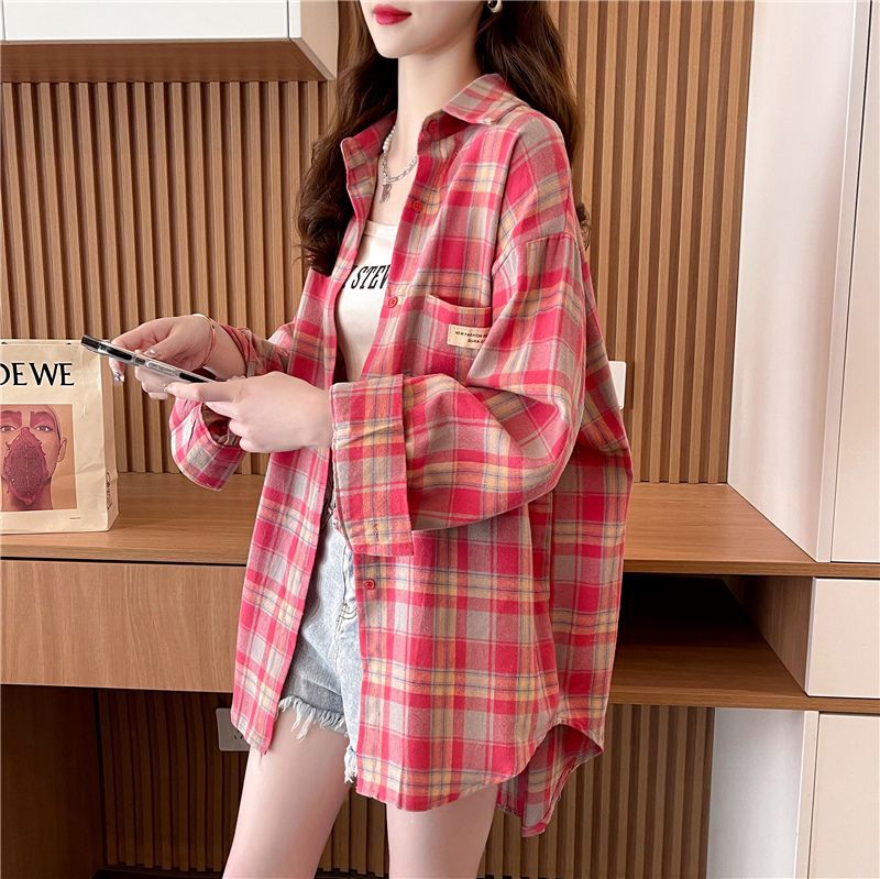 夏薄いチェック柄日焼け防止シャツジャケット女性のための 2025 新しいルーズカジュアル多用途デザイントップ
