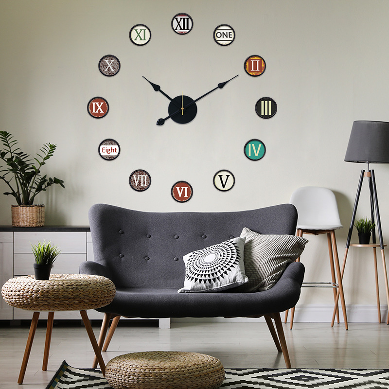 ヨーロッパ式ローマ字カラー金属立体diy掛け時計リビングルーム家庭用壁貼り時計レトロクリエイティブ時計