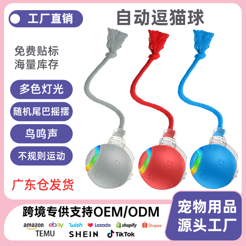 国境を越えた新しいスマート猫のおもちゃボール、ロープ付き、電動猫のおもちゃ、自己楽しみと退屈解消、猫の追跡おもちゃボール
