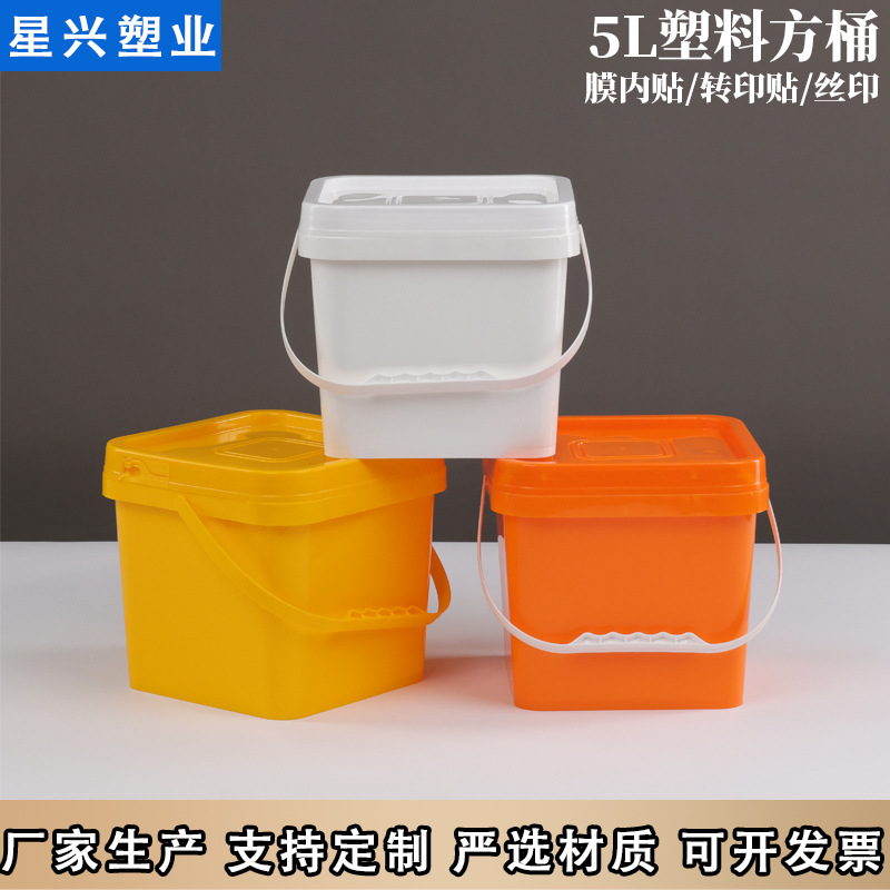 5L角型プラスチックバケツ プラスチック洗剤バケツ 厚手猫砂・犬用フード・動物用薬剤包装バケツ 簡単に剥がせる蓋付きバケツ