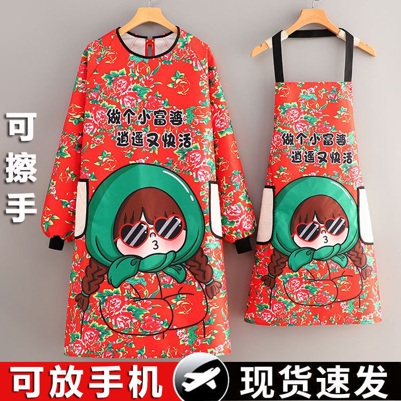 東北大花カバー長袖汚れに強い家庭用キッチン料理エプロン洋風防水作業服防油