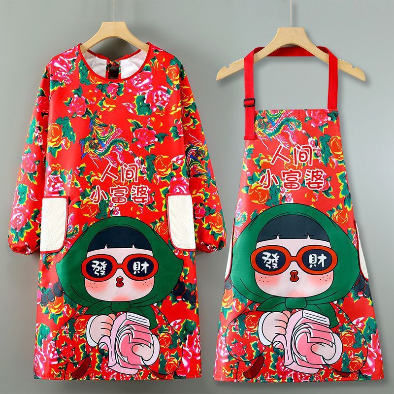 大きい花の防水のエプロンの長袖の台所の油を防ぐ料理の家庭の2025新型の出勤して汚れに耐えます。