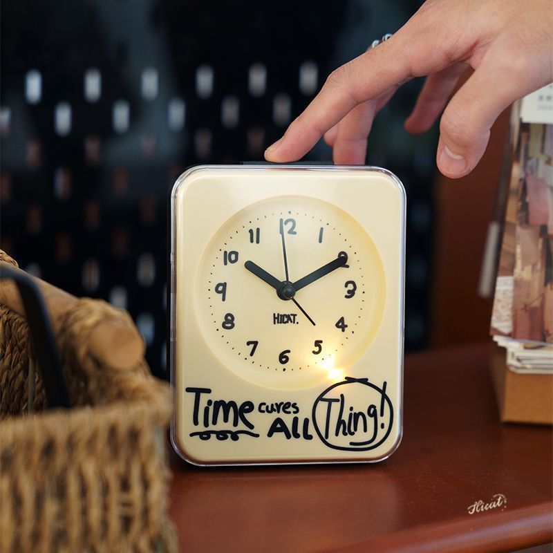 アマチュアクリーム小さな正方形落書き寝室時計ナイトライト夜光目覚まし時計テーブル時計クリエイティブ時計装飾置物