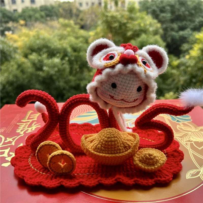 手作りのdiy編みのかわいい蛇の車の置物蛇年の大吉の毛糸のかぎ針の材料は自家製の自動車の装飾の贈り物を包みます。