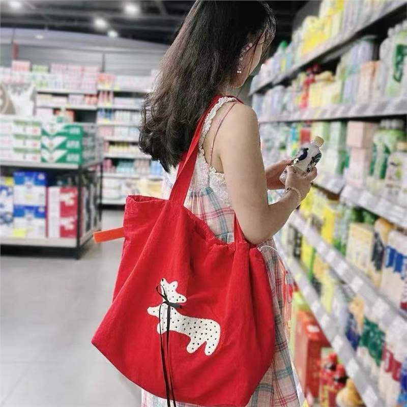 OK自作バッグ女性の怠惰な韓国版犬刺繍赤いナイロンシングルバッグ休暇ロープ大容量バッグ