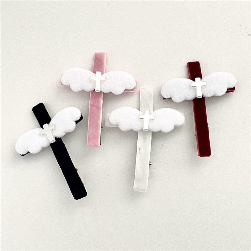 オリジナル手作りクロス天使翼ヘアクリップy2kパンクダークゴシック風ハロウィーンcosヘアアクセサリー