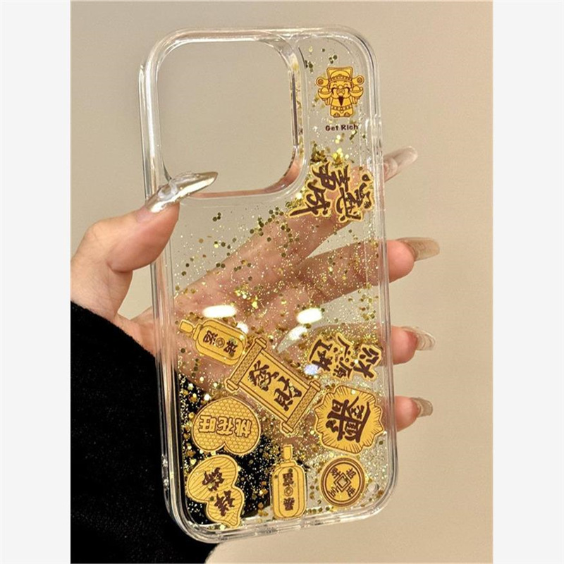 ロック音楽財神爺リンゴ16promaxケース透明iPhone15/14/13/12/11流砂ケース
