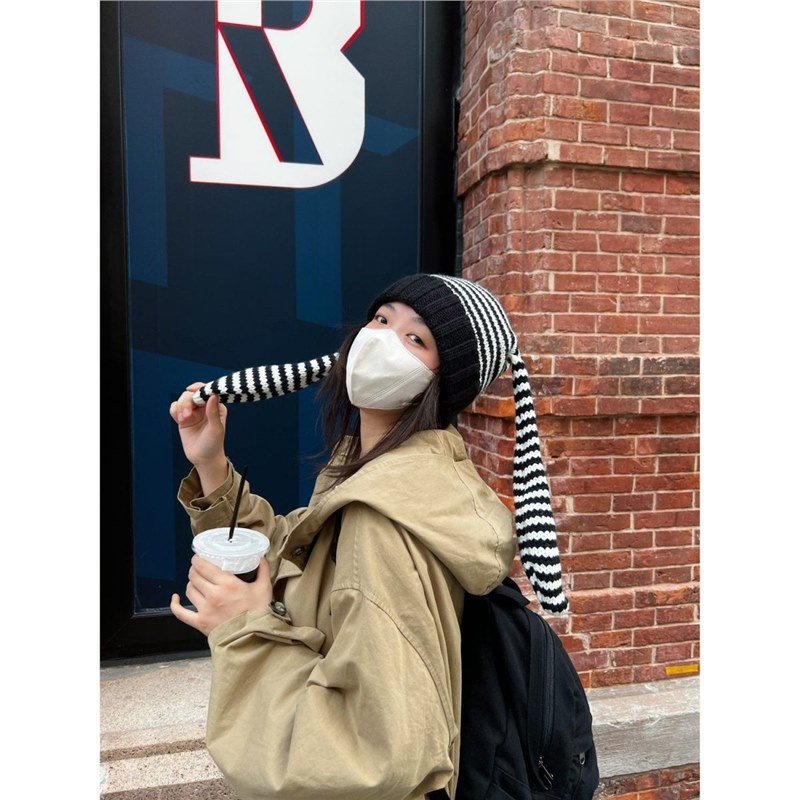 のんびりした休暇 ~ 秋冬にはかわいい保温ウサギ耳縞ニット帽子供ウサギ耳毛糸帽が流行している