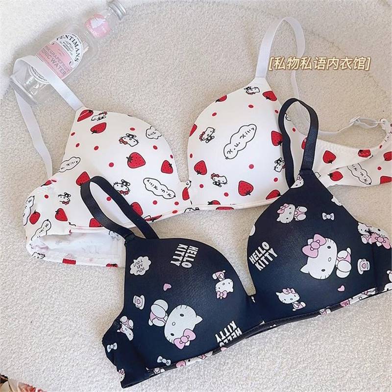 日本製甘い下着女性かわいいキティ小さな胸プッシュアップガールブラジャーリムなし学生快適なブラジャー