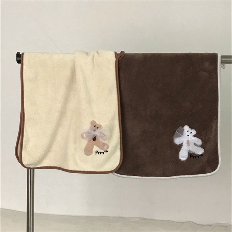 かわいいクマのカップルタオル女性用コーラルベルベットソフト超吸収性刺繍漫画フェイスタオル学生ホームフェイスタオル